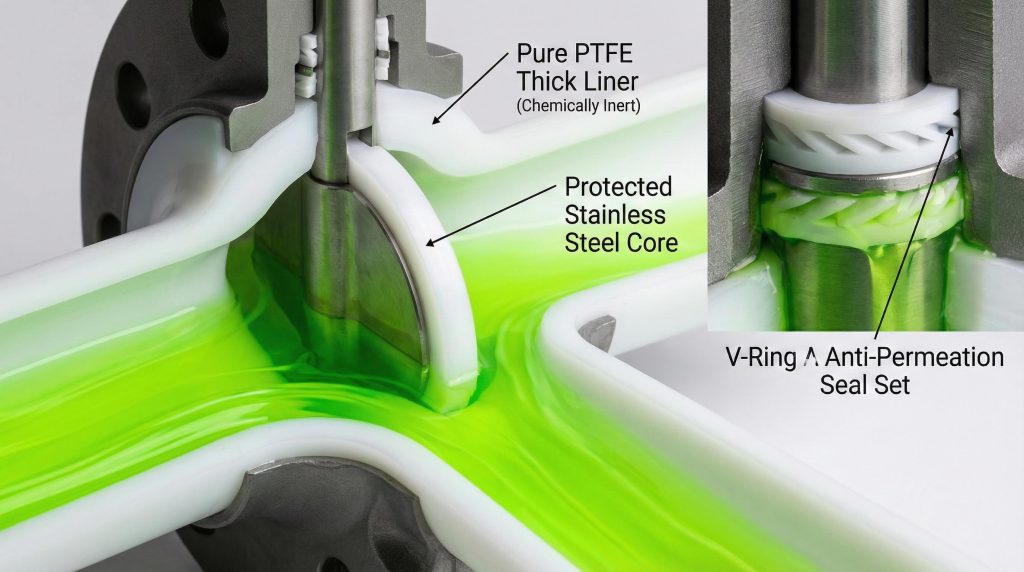 PTFE is the ultimate shield for reactive chemistry. It allows for the safe handling of hazardous materials that would dissolve standard metal valves in a matter of days.