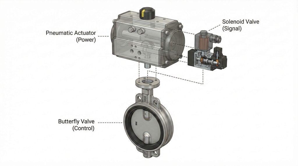 A pneumatic actuator operated butterfly valve with solenoid valve is an automated industrial tool that uses electromagnetic signals and compressed air to control the flow of media through a pipe. You often face significant challenges when manual valves fail to respond quickly enough to pressure changes or process demands in your facility. This inefficiency can lead to product waste or even dangerous system overloads. By installing a solenoid operated butterfly valve, you solve these issues with a high-speed, remote-controlled solution that ensures precision in every cycle.