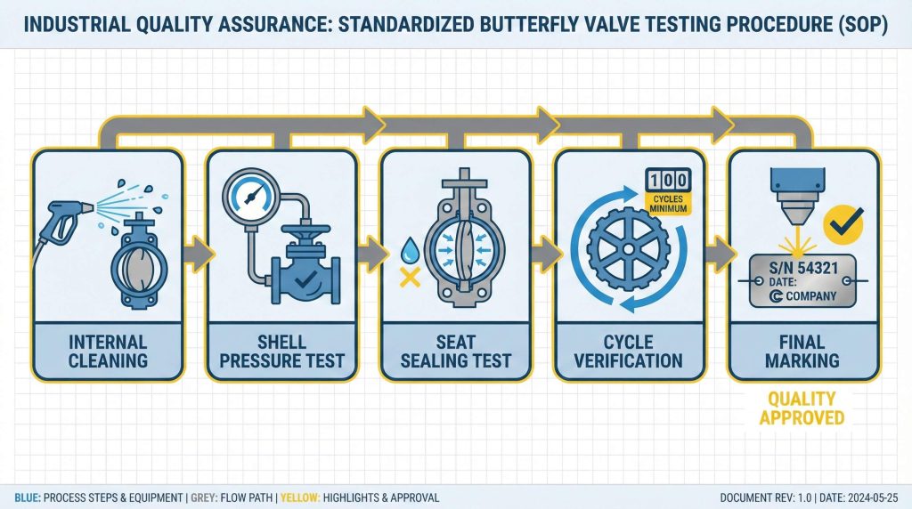 Key Takeaway: A systematic testing process from shell trials to final marking guarantees the overall quality and safety of industrial valves.