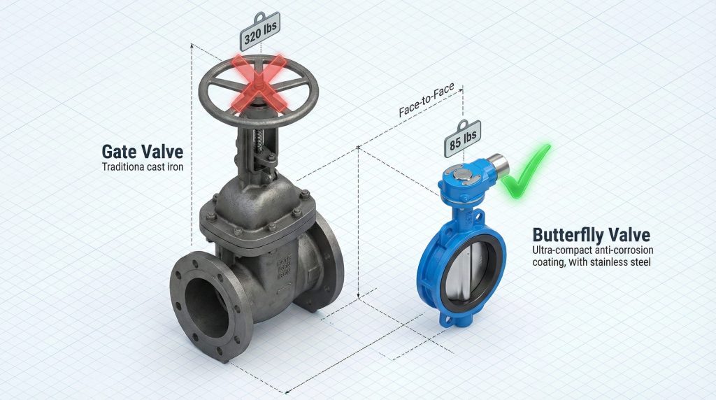 | Pipe Diameter | Valve Type | Estimated Weight | Relative Footprint |