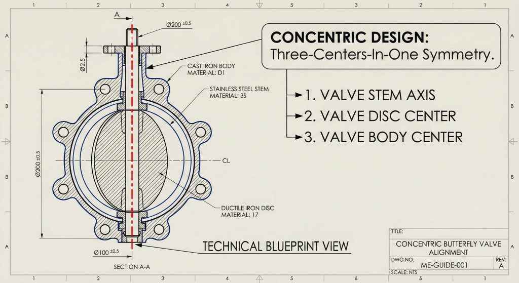 You can identify this valve by checking if the stem passes directly through the middle of the disc. Unlike high-performance eccentric valves, the center line design maintains a constant contact point with the seat during rotation.