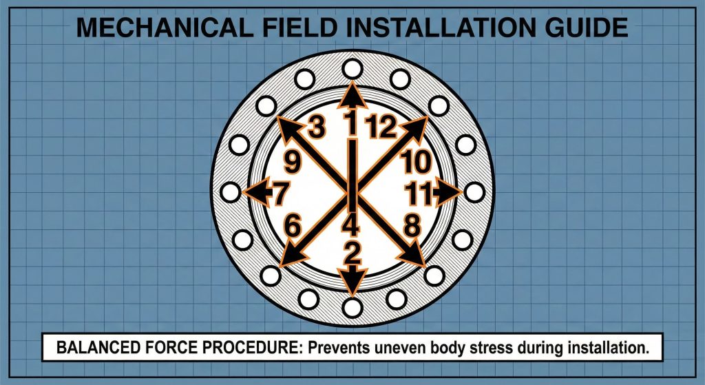 Key Takeaway: You must use a systematic, incremental torquing procedure to ensure the valve body remains perfectly aligned and the flanges provide a uniform seal.