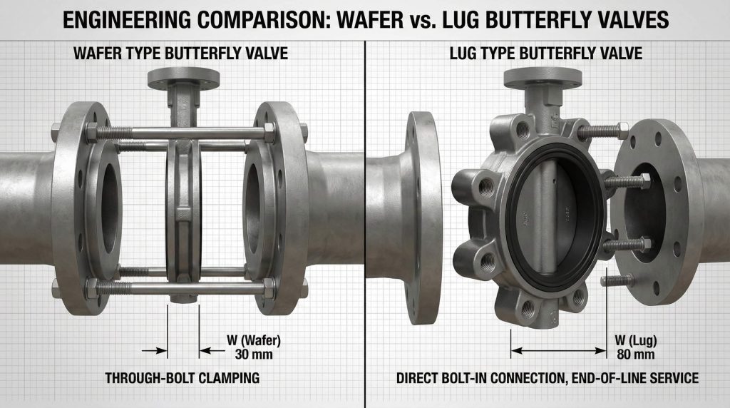Analysis: Industrial operators must distinguish between wafer and lug footprints to ensure the piping gap is correctly calculated.