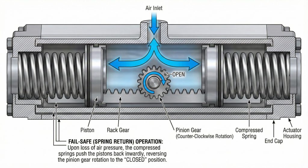 You need a spring-return operator if your system requires the valve to automatically move to a safe “open” or “closed” position during a loss of power or air.