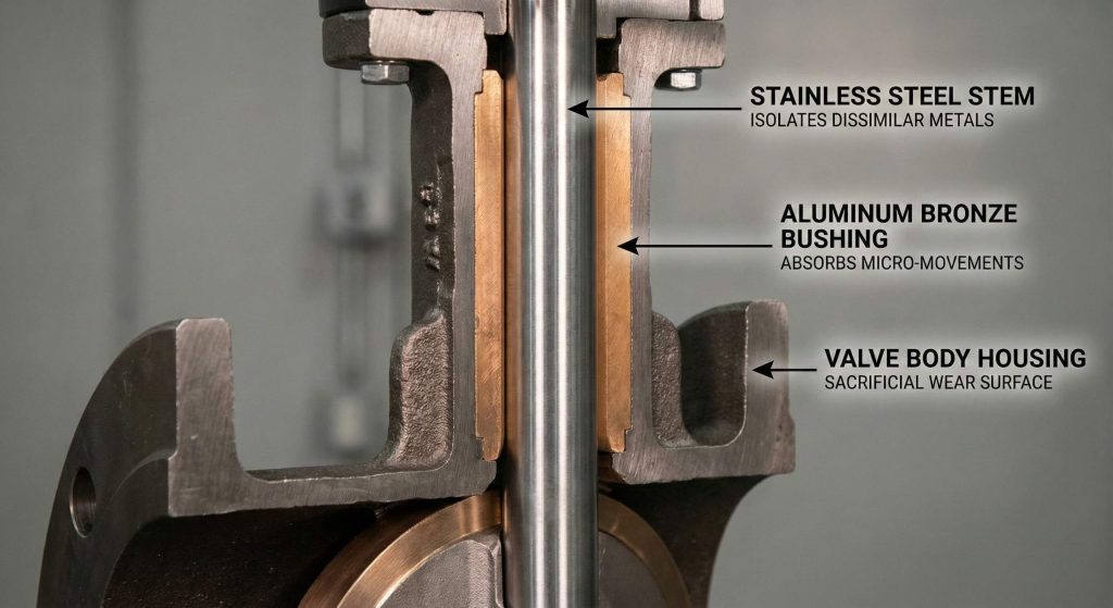 Key Takeaway: Non-ferrous bushings effectively eliminate the risk of stem seizure and cold welding, ensuring the valve remains operational throughout its design life.
